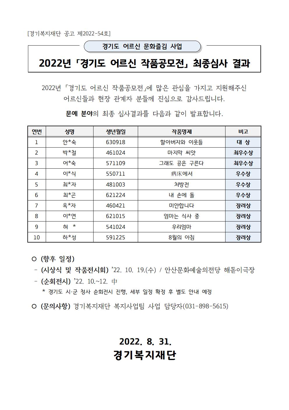 2. 2022년 「경기도 어르신 작품공모전」 최종심사 결과 [문예]001