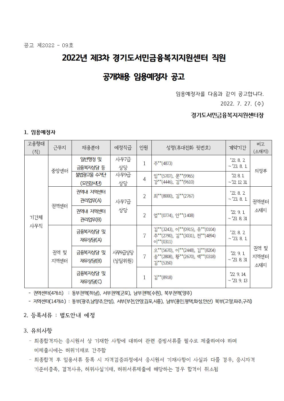 2022년 제3차 임용예정자 공고문(22.7.27001