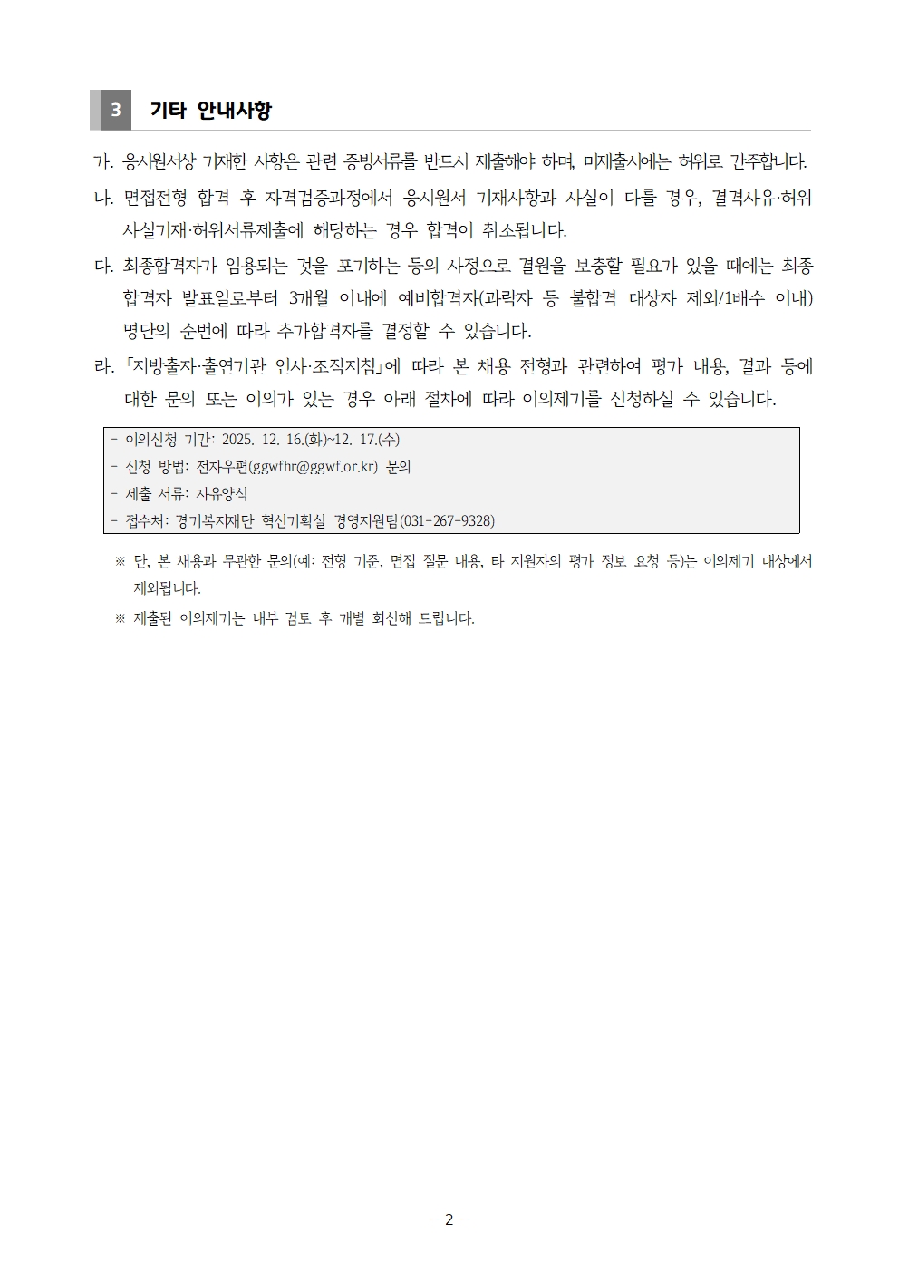 [공고 제2025-79호] 2025년 제8차 경기복지재단 직원 자체채용 서류전형 합격자 공고