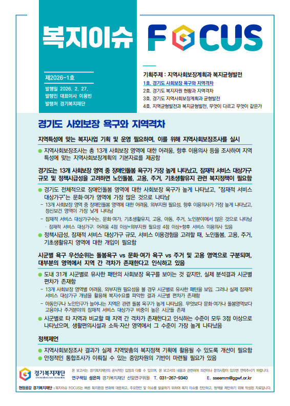 [복지이슈FOCUS 1호] 『경기도 사회보장 욕구와 지역격차』