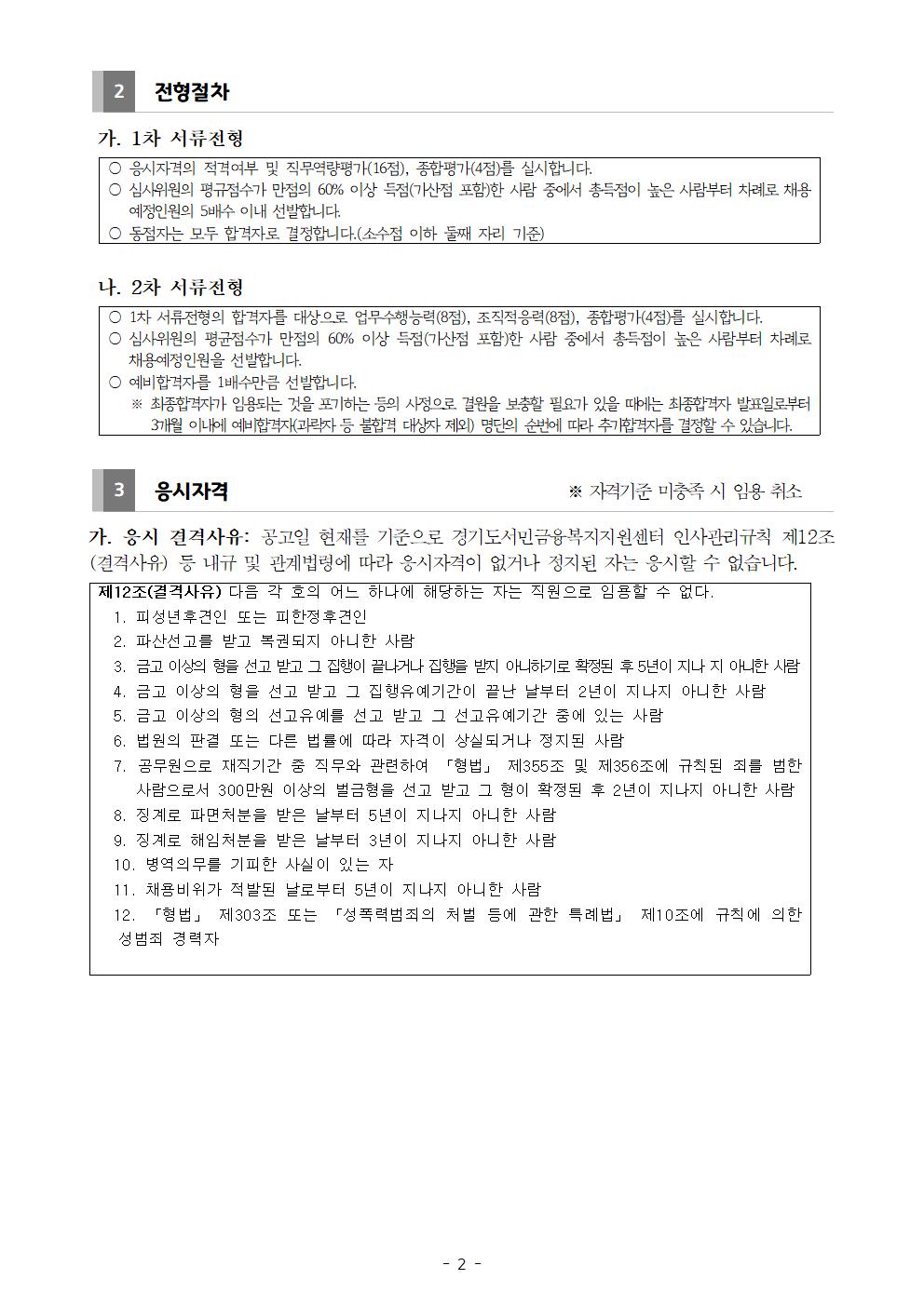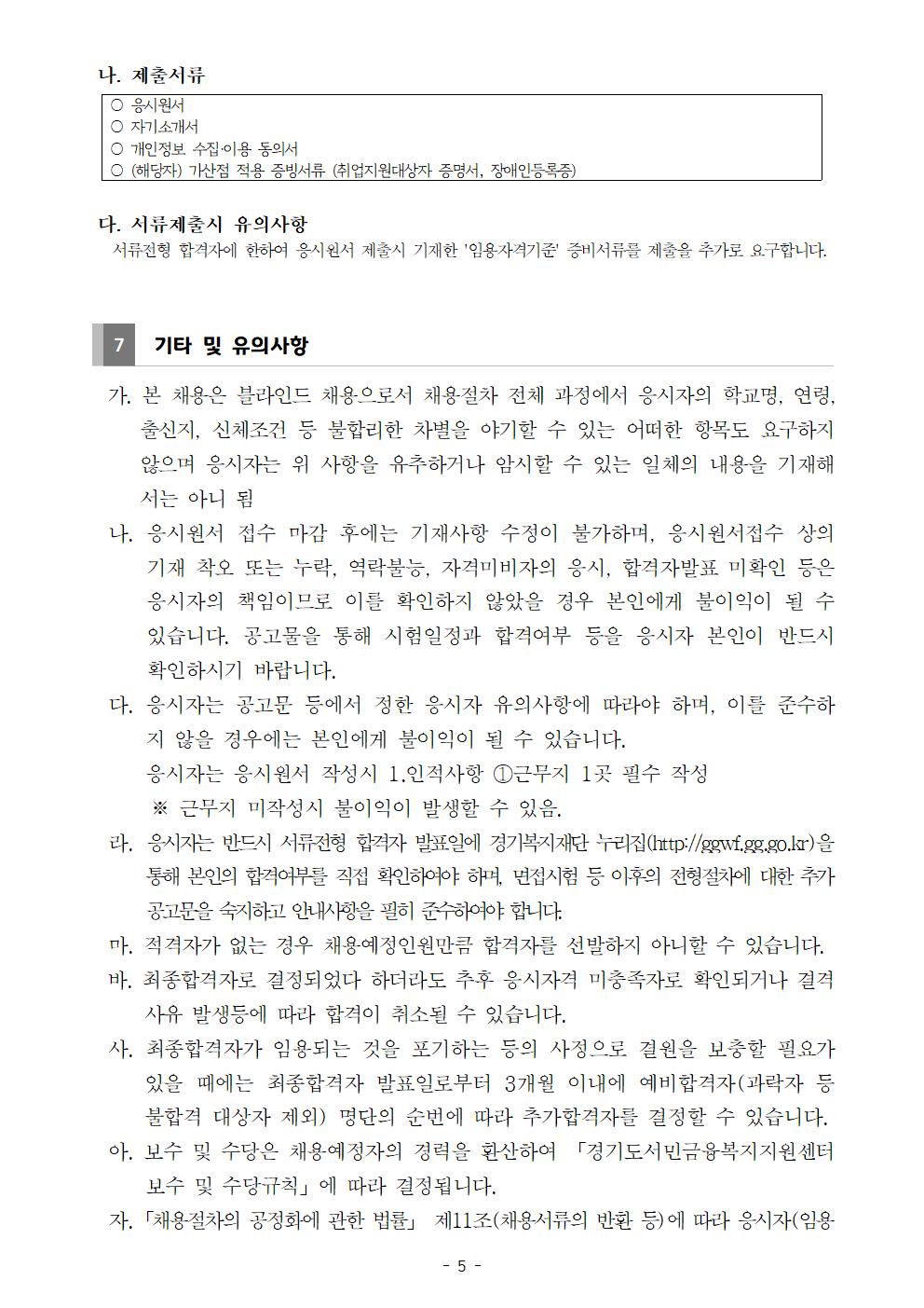 [경기도서민금융복지지원센터]2026년 제1차 경기도서민금융복지지원센터 직원 공개채용 서류전형 합격자 공고