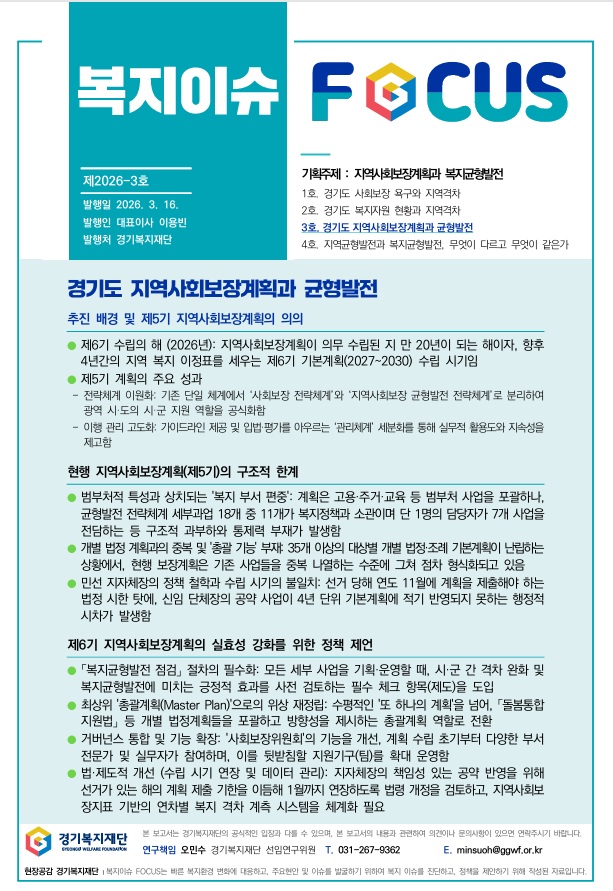 [복지이슈FOCUS 3호] 『경기도 지역사회보장계획과 균형발전』