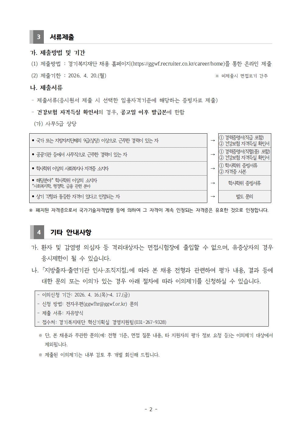 [공고 제2026-32호] 2026년 제4차 경기복지재단 직원 자체채용 서류전형 합격자 공고