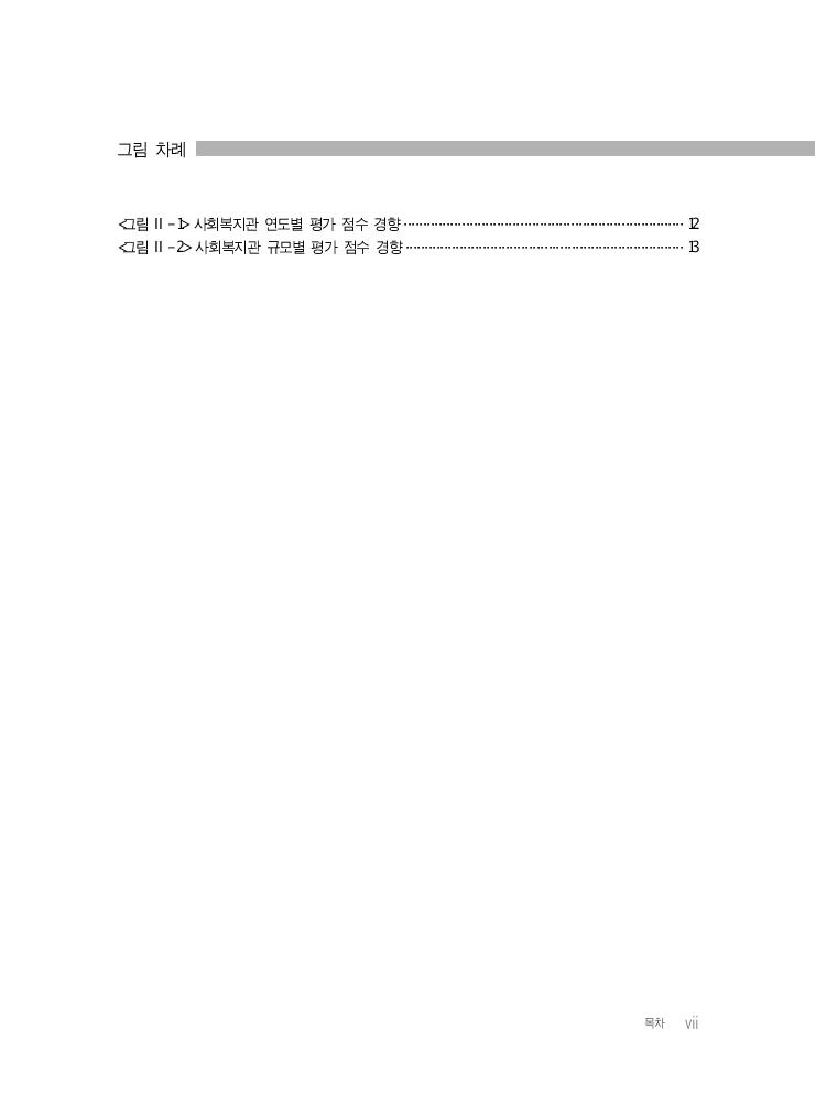 목차 vii 그림 차례 <그림 Ⅱ-1> 사회복지관 연도별 평가 점수 경향 ········································································ 12 <그림 Ⅱ-2> 사회복지관 규모별 평가 점수 경향 ········································································ 13