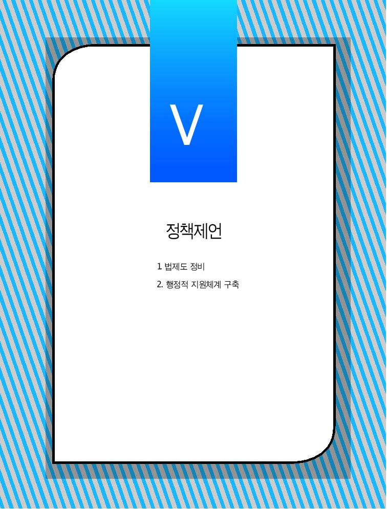 Ⅴ정책제언 1. 법제도 정비 2. 행정적 지원체계 구축